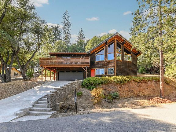 This well maintained 3 bedroom, 3 bath home in Murphys checks all the boxes! Your private hideaway on over half an acre is at the end of a quiet street off Pennsylvania Gulch Rd, yet minutes to town. Warm wood floors, cathedral ceilings and huge windows accentuate the light and airy great room and large kitchen. Welcome to 1519 Roaring Camp Road, a striking mountain retreat just minutes from the charming town of Murphys. Perfectly designed to blend rustic warmth with modern comfort, this home offers both a private escape and an entertainer's dream. The moment you arrive, you'll be captivated by the stunning architecture, featuring dramatic floor-to-ceiling windows that frame the forested surroundings and flood the interior with natural light. The expansive great room with soaring ceilings, rich wood finishes, and open-concept design creates a warm and inviting atmosphere, perfect for cozy evenings or lively gatherings. The gourmet kitchen is designed with both function and beauty in mind, boasting premium appliances, abundant counter space, and an easy flow into the dining and living areas. Step outside onto the spacious deck, ideal for summer barbecues, morning coffee, or simply taking in the tranquil views of the Sierra foothills. With multiple bedrooms and baths thoughtfully situated, this 2000 SF home offers comfort and privacy for both family and guests. The primary suite is a true retreat, complete with generous space, serene forest views, and spa-like amenities. The downstairs level features a versatile bonus area,full bath, perfect for a game room, office, or guest accommodations. Practical features include a two-car garage, paved driveway, and low-maintenance landscaping, abundant hardscapes, all adding to the ease of ownership. Surrounded by nature yet close to award-winning wineries, restaurants, boutique shops, and outdoor recreation like hiking, golf, and kayaking, this property offers the best of both worlds. Whether you're seeking a full-time residence, a vacation home, or an investment opportunity, 1519 Roaring Camp Road is a rare gem where modern living meets mountain serenity. Don't miss the chance to own this exceptional property in one of California's most sought-after Gold Country destinations. Pest and septic certifications available.