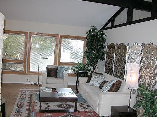 Complete info: http://1519sanpatricio.CanBYours.com - 1960's Ranch , w/ great vaulted black beam ceilings. Huge 2nd living area with stand-alone wood stove tiled floor. Tile in both baths. Cool sea-green tile backsplash in kitchen, w/ stainless & newer lighting, & breakfast bar. Staggered-brick accents. Brand new furnace & newer wood sash thermal windows. Very private, front yard set back from street, w/ large shade trees sweet back yard, too.