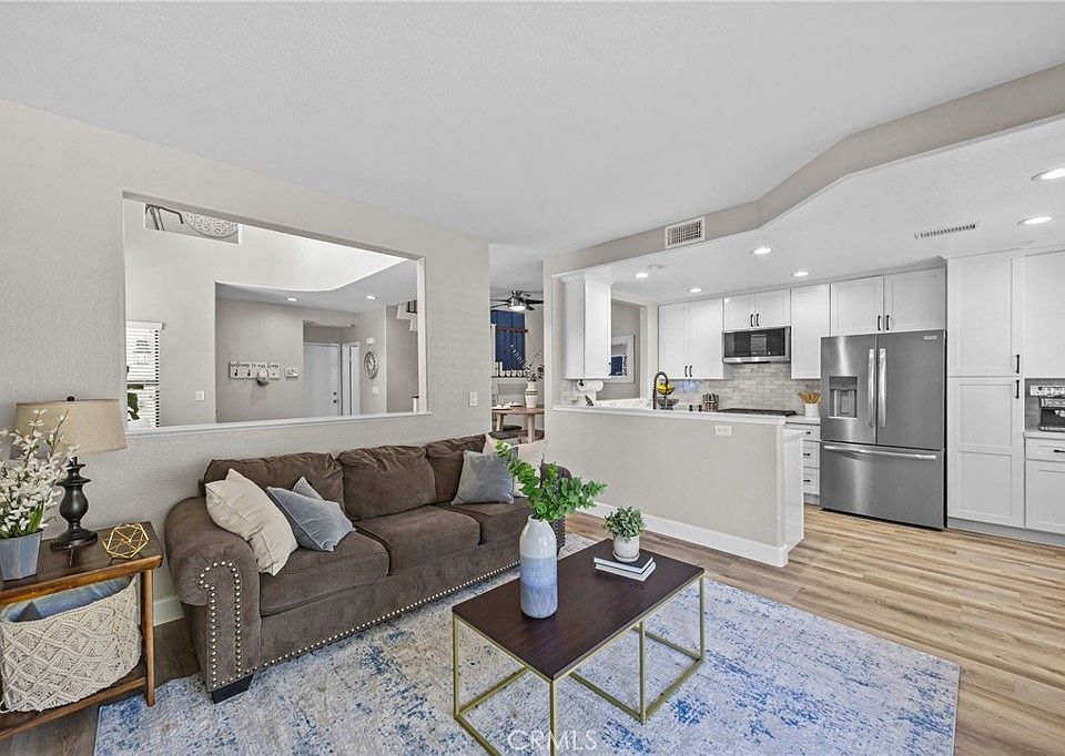 Welcome to this beautifully maintained residence, ideally situated approximately 5 miles from both Yorba Linda and Anaheim Hills. This stylish home features 3 generously sized bedrooms, 2.5 bathrooms, and a loft. offering a comfortable and functional layout for everyday living. Enter inside to discover brand-new luxury water-resistant laminate flooring, sleek quartz countertops in the kitchen, and a fully renovated primary shower that adds a touch of spa-like elegance. Designed with an open-concept floor plan, the kitchen flows effortlessly into the living area, where a cozy fireplace creates an inviting atmosphere for both relaxing and entertaining. This property is an attached single-family home, offering the benefits of low-maintenance living with the feel of a traditional residence. Enjoy year-round comfort thanks to a newly installed HVAC system, complete with updated ductwork and furnace for enhanced energy efficiency. With convenient access to the 241, 91, and 71 freeways, commuting and exploring nearby shopping and dining destinations is a breeze. Additional highlights include a low HOA and no Mello-Roos taxes, making this move-in-ready gem a smart and stylish choice.