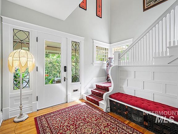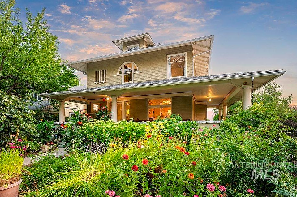 The Sensenig House – one of Boise’s great treasures set on a corner lot where North End & downtown meet. Built in 1905, this idyllic Foursquare is listed on the National Register of Historic Places & honored with a Historic Preservation Award for the current owners’ careful restoration. Lush gardens lead to an idyllic wraparound porch that has long served as a gathering place. Original details of leaded glass, architectural accents, hardwood floors, & detailed millwork fill the interior. A grand, light-filled living room opens to the porch & grounds. Kitchen with gourmet appliances, butler’s pantry, elegant formal dining, & office or reading room complete the main floor. Upstairs, find 4 beds & 2 full baths, one with private sauna. A garden-level suite (with full kitchen, laundry, 2 beds & bath) is ideal for multi-gen use or tenants. The home’s flexible zoning & layout create opportunity for its next chapter: a gracious private residence, a boutique B&B, or a visionary blend of home+business in Boise’s heart.