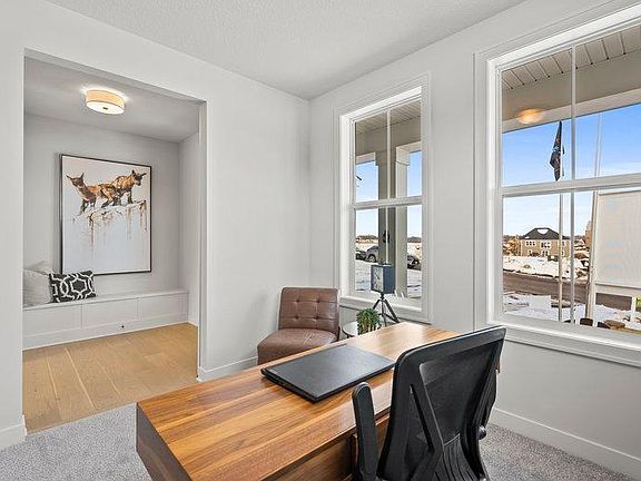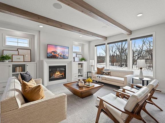 center island, custom built cabinetry, and walk in pantry! Beautiful fireplace feature wall with built-in cabinets. The upper level