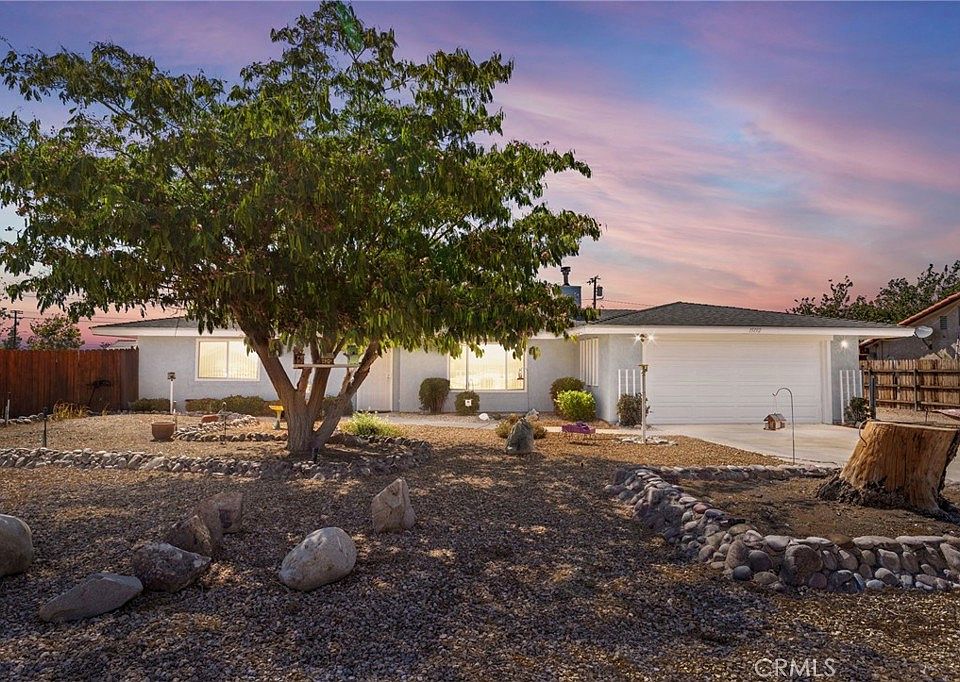 Welcome to this beautifully updated three-bedroom, two-bathroom home nestled in the heart of Apple Valley's peaceful desert community. This thoughtfully designed residence features a split floor plan with an open concept that seamlessly connects the living spaces, creating an ideal environment for both daily living and entertaining guests. The home showcases numerous recent improvements that enhance both comfort and efficiency. A freshly painted exterior welcomes you to a property that has been meticulously maintained, complete with a new roof, new windows, and an updated guest shower. Inside, you'll appreciate the modern conveniences of smart technology, including a wireless garage door, thermostat, and stove that bring contemporary living to this charming desert retreat. The living room serves as the heart of the home, featuring attractive laminate flooring and a cozy wood-burning insert that provides warmth during cooler desert evenings. The completely fenced property offers exceptional outdoor living opportunities with a covered patio perfect for year-round enjoyment and a spacious yard that provides ample room for a future pool and recreational vehicles. Practical amenities include convenient recreational vehicle access and two electrical-equipped sheds for additional storage. The generous lot size truly sets this property apart, offering endless possibilities for desert enthusiasts who enjoy outdoor activities and entertaining. Located in a family-friendly neighborhood with easy access to local parks, shopping, and schools, this home combines the tranquility of desert living with modern conveniences. The established community provides a perfect balance of peaceful residential living while maintaining proximity to essential amenities and recreational facilities.