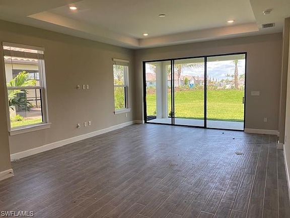 Brand new Twin Villa ready for immediate occupancy! Light & Bright 3 Br + Den features white cabinets, quartz counters, tile floors, natural gas, tray ceilings, stainless steel appliances and much more. The Owner's Suite includes dual sinks, a water closet, and a two-sided walk-in closet. On the opposite side of the home are the other secondary bedrooms, another full bath, the study, and the 2-car garage that opens to the front of the villa. No need to wait for building, this home is ready NOW! Some Photos are of the furnished model. Esplanade by the Islands is a community centered around resort-style living. Amenities include Bahama bar/grille, resort-style pool, full-service wellness center, tennis courts, pickleball courts, bocce, culinary center clubhouse and dog park. Located close to both downtown Naples and Marco Island, allowing you to enjoy a vast variety of beaches, restaurants and shopping.