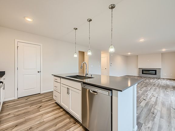Home Details: Cornwall Slate Exterior Color Scheme (Actual color may differ from rendering) Elevation B Great Room Fireplace Note - Photos featured are from same plan, but different home 2-Bay Garage Featuring a thoughtfully designed two-story layout, the Delaney plan offers plenty of private and common living space. On the main floor, the foyer leads to a spacious kitchen with a center island and walk-in pantry, overlooking an open-concept great room and dining area. You'll also appreciate a downstairs bedroom with access to a full bathroom-plus, a generous valet entry with storage space off the garage. The upstairs features two more secondary bedrooms, an expansive bonus room and a convenient laundry room. Completing the home, an impressive owner's suite boasts a roomy walk-in closet and a private bath with double sinks.