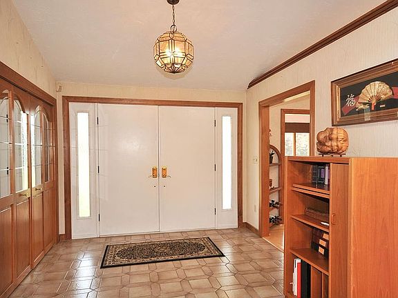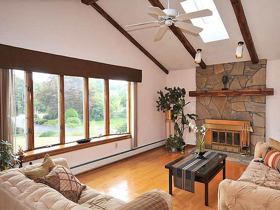 Wonderful open layout and easy single level living with 2 acres set far back from the road! This comfortable home offers great space for living and entertaining with a private backyard and sparkling pool! Dramatic cathedral ceilings throughout (excluding BRs), Family Room with stone fireplace, & bay window, Dining Room open to sunken Living Room, Sunroom and Deck. Large bedrooms - all with wood flooring, 3 bathrooms with granite counters, 1st floor Den with closet, ENORMOUS finished, walk-out basement (not included in square footage listed), 4 Bedroom septic system. This IS a truly unique home!