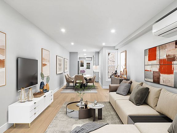 Prime Gowanus - Custom designed 1 family townhouse. Drop your bags and move into this once in a lifetime space. First floor walk into your open concept space with beautiful brand new modern kitchen with quartz countertops and full tile backsplash. All new stainless steel appliances. Bonus half bathroom off kitchen. Basement is fully tiled and finished with laundry area with washer and dryer and an additional beautiful full tiled bathroom. Separate front entrance. Top floor you have 3 full bedrooms with high ceilings and a custom tiled bathroom. Other features: brand new plumbing, electric, roof, sewer line, and windows. Mitsubishi split heat/ ac system in every room. 7 in engineered wood flooring throughout. Full tile in basement. Finishes are done with high end fixtures. Backyard has a tile patio surrounding a custom modern wood fence great for entertaining. Nothing like this one the market. A true turn key property.