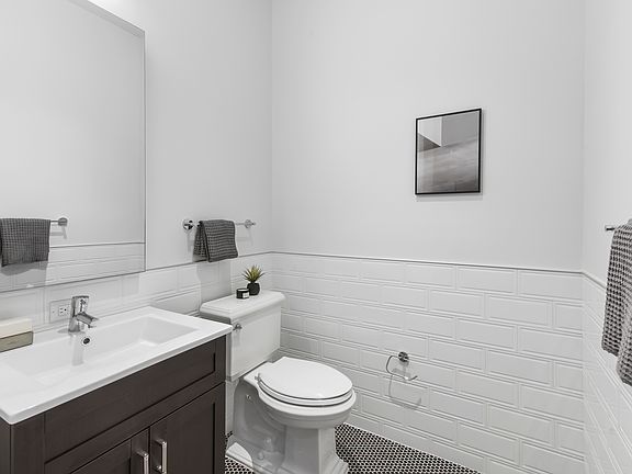 The bathrooms are equipped with quarts stone vanities, designed subway tiles, recessed vanity mirrors and double vanities in many 2 bedrooms.
