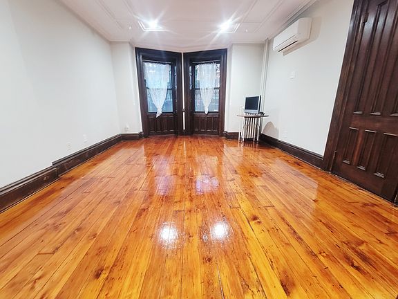 This garden-level, 2-bedroom, 2-bath apartment in a 6th Avenue Brownstone features a spacious backyard. The classic kitchen includes a dishwasher, large refrigerator, and space for a breakfast table. The living room, overlooking 6th Avenue, boasts original French pocket doors separating it from the kitchen and pocket shutters on the windows for privacy. The primary bedroom (13ft x 12ft) offers an en-suite bathroom with a claw-foot tub and direct backyard access. The second bedroom (7ft x 13ft), has backyard views and a large closet (3ft x 7ft). A second bathroom with a stall shower is also included. Heat and hot water are provided. Small pets with approval (no dogs left unattended outside). Each room has split-system AC/heating. Washer/dryer in the basement. Please send your unfo when emailing: