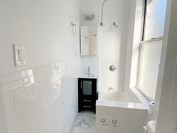 GORGEOUS! Sunny 1bed with brand new, recently renovated kitchen and bath. Apartment features stainless steel kitchen with full-size stove, refrigerator, and microwave, grey and white marble bath with small bathtub and vanity, plank hardwood floors, and ample closet space. 2nd floor of a walk-up building (1 flight up). Live-in super. Video intercom. Wash and fold laundry service across the street. SORRY, NO PETS.