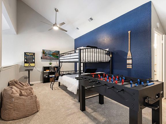 Experience upscale living in this stunning 2-bedroom, 2-bath condo perfectly situated in a prime location. Featuring soaring 20-foot ceilings, designer accent walls, & two sliding doors leading to a private balcony w/beautiful lake views, this home offers both style and serenity. The updated kitchen, floors, and bathrooms give the space a modern, luxurious feel. Primary bedroom features an eye-catching accent wall, spacious walk-in closet, & convenient access to a full bath. Upstairs, you’ll find an extra-large loft with stylish accent wall—ideal for a game room, home office, or guest suite complete w/ a large walk-in closet and a remodeled full bath. Recent upgrades include a new roof (2025), water heater (2025), and updated AC wiring (2025). April Sound amenities include pools, tennis courts, fitness center, clubhouse, & access to boating/fishing. Ideal for full-time living, a weekend escape, or short-term rental w/ Airbnb potential averaging $36K annually. Furnishings negotiable.