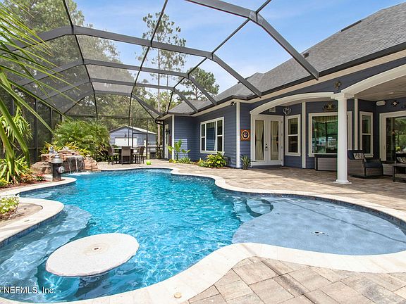 Equestrian estate with a barn and stalls, shed, 2 garages and a custom screened pool! Master-built Ranch Estate w/ screened pool and lanai, outdoor kitchen. Listed Perfect condition - freshly painted exterior (March' 25). Hardie® fiber cement exterior over 2x6' wood frame with R19 and blow in insulation. Structured cabling system and built in safe! Hurricane rated roof and walls! Bonded Builders Home Warranty in effect! Keep up to 4 horses, a donkey, chickens and a goat in two paddocks. Huge 36 x 48' barn with 4 stalls, wash rack and conditioned tack room + 12 x 36' covered storage area. Stunning home, situated in The Ranch Club at Ashton Oaks, offering an unparalleled living experience. RCAO amenities include a gated entrance, barrel racing ring, round pen, 2 miles of bridle trails and a 40 x 40' pavilion. Located in Central Saint John's County, just S of the World Golf Village: A+ schools. 7 min. to Publix and Murabella. 10 min to St. Johns river / 15 min to St. Augustine, FL. Gated Two-car and single car garage - both attached!