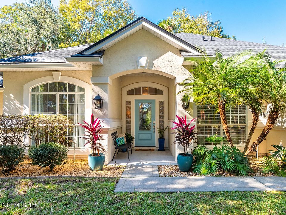 Welcome to Old Palm Valley, a beautiful neighborhood tucked near top rated schools in the heart of Ponte Vedra. This inviting home has been thoughtfully remodeled to create a bright open layout with a spacious family room and fireplace that flows easily into the kitchen. A separate office or bonus room with French doors was also added.Natural light pours in through a wall of windows overlooking the screened patio, private putting green, and peaceful preserve. There is plenty of room to add a pool if desired.The home offers 4 bedrooms plus a dedicated office and three full baths. Wood floors run throughout for a clean and elegant feel. The generous primary suite includes a large bath with double vanities, a walk in closet, garden tub, and separate shower. A roomy formal dining area provides a great setting for holiday gatherings. This well maintained home sits on a preserve lot with a fully fenced yard on a quiet cul de sac street Roof 2020, HVAC 2012, and water heater 2021.