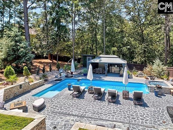 Your ideal "Staycation"! Fabulous home with phenomenal outdoor living areas including heated saltwater pool/spa, outdoor kitchen, cabana with full bath & the ultimate privacy backing to wooded area. From the "rocking chair" front porch, you enter the stately volume/tray ceiling foyer with wrought iron staircase that opens to the formal dining room & volume ceiling formal living room with wall of tall windows. The Chef's kitchen with sunny breakfast area, features professional, stainless appliances, loads of counters/cabinets, island & pantry. The kitchen opens to the spacious, volume ceiling family room with fireplace that also has a wall of tall windows. The formal living room, breakfast area & family room open to the expansive raised patio with pergola that overlooks the fabulous "resort" like backyard! The main level primary bedroom has a tray ceiling & a wonderful sitting room/office with fireplace as well as two walkin closets & luxurious bathroom with separate vanities, large, tiled shower, whrilpool tub & separate water closet. Upstairs are 4 additional bedrooms; 1 with ensuite bath. The FROG is the 5th bedoom currently used as a media room. The 3rd garage has a mini-split hvac used as a home gym. Exceptional quality with hardwoods throughout, extensive moldings, etc! Located in a gated community in the WildeWood area & convenient to interstates, downtown. Click the Virtual Tour link to view the inter-active floorplan. Disclaimer: CMLS has not reviewed and, therefore, does not endorse vendors who may appear in listings.