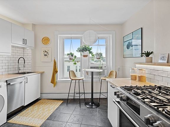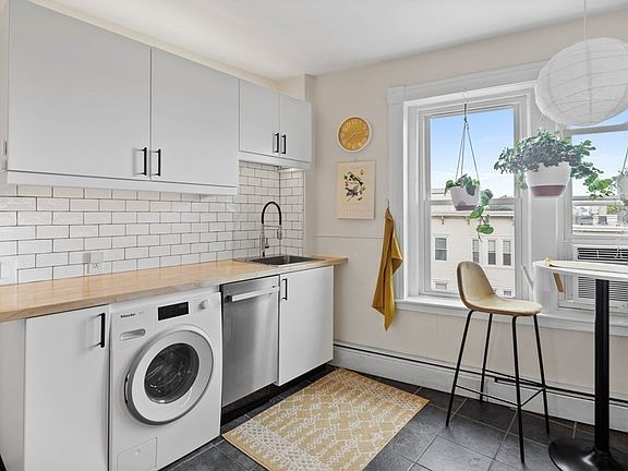 Perfect retreat for a city lover! This chic top-floor 2 bed/1 bath condo boasts a very desirable location in the Wellington-Harrington neighborhood, situated directly between Inman Sq and East Cambridge. The newly renovated kitchen features new appliances, cabinetry, butcher-block counters, tiled backsplash and a sizable pantry. The front loading washing machine is also conveniently located in the kitchen. The bathroom was recently upgraded as well! Between the hardwood floors and unique architecture, you’ll love coming home after the hustle and bustle of the city to your charming condo. Extra outdoor living space in the mature common courtyard, including: a fire pit, barbecue area and lush landscaping. Public transit options are plentiful with the nearby Green & Red T Lines and the #69 bus just outside your doorstep. With a 97 Walk Score, this home is in close proximity to Boynton Yards, Union Sq and Kendall Sq. Donnelly Field and the new Valente Library are right across the street!