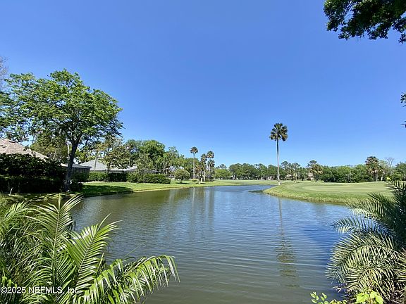 Private and peaceful, this Sawgrass Players Club waterfront cottage overlooking lush tropical landscape and expansive golf course views offers resort-style living with access to TPC Championship golf, the clubhouse, and social events. Ready for a personal touch, the potential to create the perfect vacation or retirement home here is limitless. The inviting open floor plan includes split bedrooms, one with ensuite bath, plus enclosing the huge Florida Room could add 432 sf more heated and cooled space. Located nearby is The Yards offering golf, tennis, pickleball, swimming, and The Argyle Restaurant. When it's time to relax, enjoy the multiple parks, walking trails, and lakefront fishing and kayaking. Sawgrass Plaza sits just beyond the 24x7 security gate and offers numerous shopping/dining options, and beach access at Mickler's Landing only a few minutes away. Stackable washer/dryer & hot tub convey. Roof 10 yo, AC 9 yo, HWH 3 yo, been replumbed. As-is sale. *Dues inc security/pool*