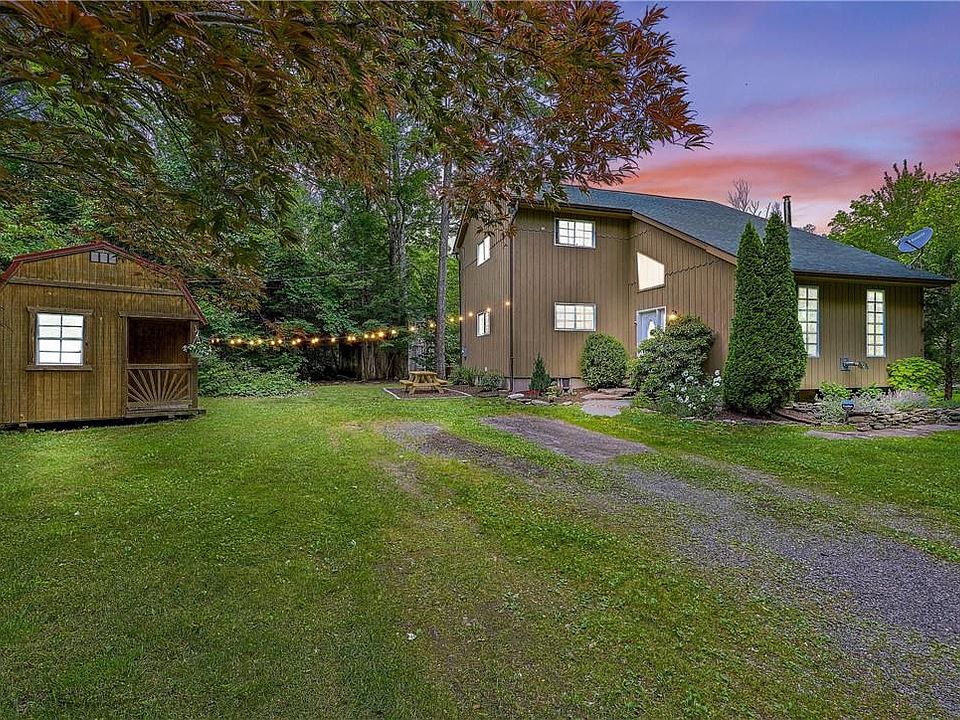 Discover peace and privacy! Nestled in the foothills of the Catskill Mountains with convenient access to breath taking sites, hiking trails, lakes, historical sites, while still offering easy access to shopping, medical and award winning restaurants! This property is perfect for both vacation destination or full time refuge. Magical contemporary waiting for you to call home! This stunning property INCLUDES a SECOND NEIGHBORING LOT and in total provides 7.8 acres, offering plenty of space for exploring, recreational activities, possible future expansion or simply a privacy buffer. The owners have updated this home to seamlessly incorporate the beautiful surroundings and have created a space that is inviting and rejuvenating! Outdoor features include professional landscaping, a large shed, a second smaller shed, fire pit area, large garden, a gorgeous large deck that overlooks the beautiful pond ( with fish) on the property and plenty of shady relaxing spots to enjoy a beautiful summer day! Upon entering the home you are greeted by the impressive soaring ceiling trimmed in custom wood. The entire space radiates charm while urging you to get comfy and stay a while. Exposed beams, solid wood doors, wood floors, and an abundance of natural light throughout, add to the charm and comfort! The open floor plan provides clear site lines between the chefs kitchen which features new stainless steel appliances, the dining area and the large yet cozy family room. First floor master bedroom and full bath round out the main level. Upstairs an additional large bedroom, additional full bathroom, an office that can double as a third bedroom and an amazing open loft/den that provides a scenic view of the living room below. Unique, custom, well maintained and perfectly set up, your search is over! Call today to schedule a private tour of this beautiful retreat! Additional Information: Amenities:Storage,HeatingFuel:Oil Above Ground,