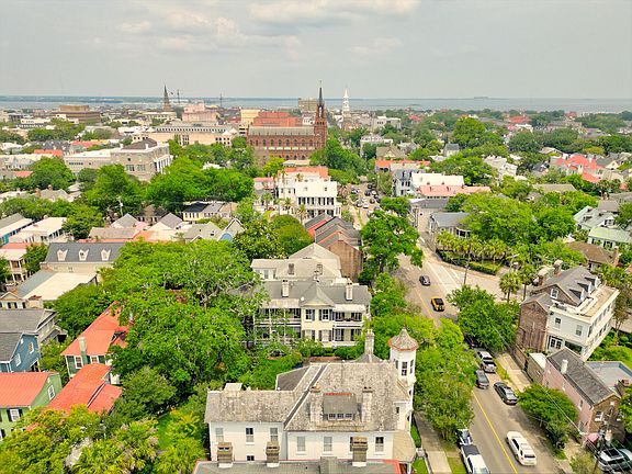 If you've been searching high and low for that perfect Charleston charm, look no further- you've found it! Take a step back in time and into this gorgeous historic condominium in the heart of Downtown Charleston! This condo comprises the entire upper floor of the Bird-Tiedeman house, about midway between Colonial Lake and the Cathedral of St. John the Baptist. You'll fall in love with the light-filled open spaces with soaring ceilings and massive windows! Golden Hour is not to be missed in this unit, as sunlight pours in and the home truly glows! Two large bedrooms can be found at opposite ends of the unit, each with it's own full bathroom and ample closet space. An updated chef's kitchen, large dining room, and huge open living room make up the heart of the home, boasting multiplefireplaces and historic touches such as beautiful French doors from multiple rooms leading onto the large upstairs piazza! The unit also shares a large shaded brick courtyard with massive Live Oak branches sprawling above. You're also sure to love the fact that the unit has two off-street parking spaces for your convenience! The updated kitchen features granite countertops, white cabinets, stainless appliances, and a tile backsplash. Heart pine floors adorn the entire unit, as well, and the owner's suite on the front of the unit also boasts a large attached office with built-in storage. Walk or bike to any part of Downtown Charleston in a matter of minutes, as you're right in the thick of things with easy access to shopping, restaurants, bars, White Point Garden, The Battery, Rainbow Row, and anything else you can hope to see! As an added bonus, Burbage's Grocery is located just across the street for quick taste of Charleston!