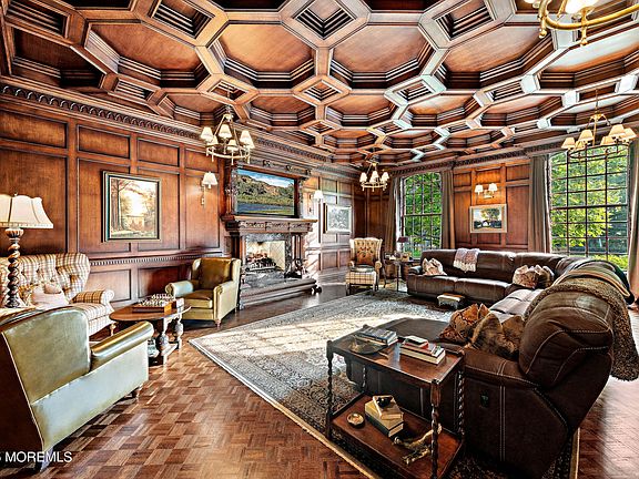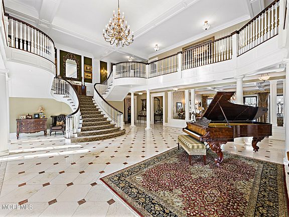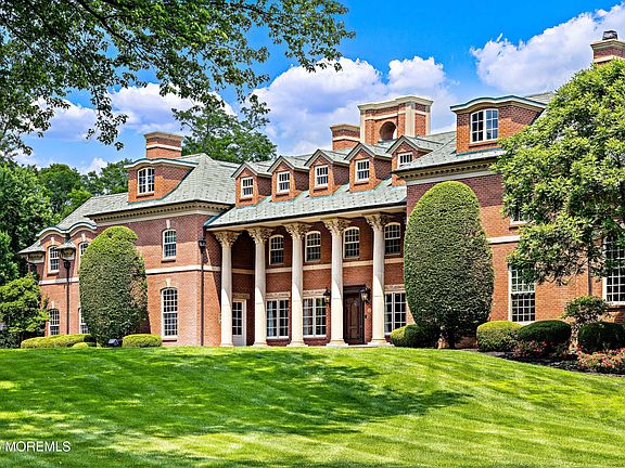 Welcome to 152 Bucks Mill Road, where grandeur and exclusivity await you at every turn. As you pass through the stately gates of this Colts Neck estate, you are greeted by an all-brick mansion that exudes timeless elegance and sophistication. With its impressive facade and eight garages, the property instantly evokes the charm and prestige of a private country club. Spanning over 15,000 square feet (not including the basements) on just over 5 acres, this home is a masterpiece of global craftsmanship. Materials and artisans sourced from around the world have created a truly unique and luxurious living experience. Every detail, from the custom woodwork to the exquisite stone finishes, speaks of unparalleled quality and refinement. Perfectly positioned in the heart of Colts Neck, this seven-bedroom, eight-and-a-half-bathroom property offers the ideal blend of seclusion and convenience. Bucks Mill Park, with its sports fields and horseback riding trails, is just across the street, while all three schools are within a mile and a half. The Town Hall and exercise trail are merely two blocks away, ensuring that every amenity is within easy reach.