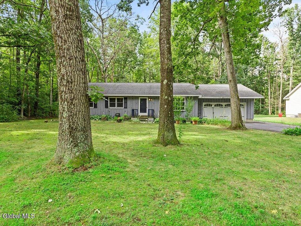 Nestled in the municipality of Moreau and within the South Glens Falls School District, this ranch fixer-upper home offers a prime location near shopping and is a short distance to Glens Falls, Saratoga and Lake George. Set on almost half an acre, the property boasts well maintained landscaping, welcoming curb appeal and large driveway w/oversized 2 car garage (slight wall damage due to a former roof leak). The home features 3 br, primary w/half bath and partially remodeled main bathroom. The eat-in kitchen features a wood fire burning stove and sliding doors to oversized rear deck. The living room showcases hardwood floors and picturesque bow window. Highest/best 7/20 5pm