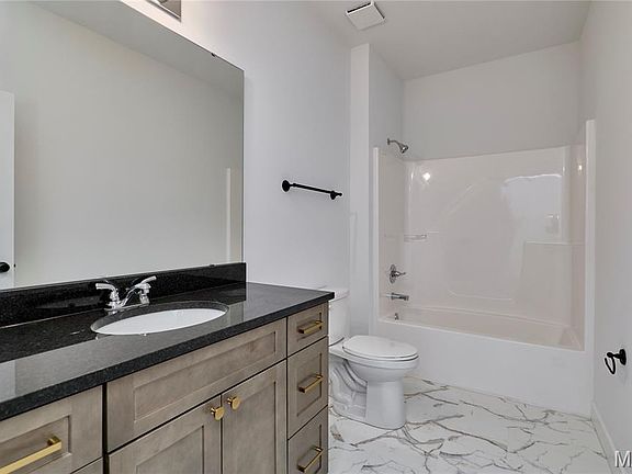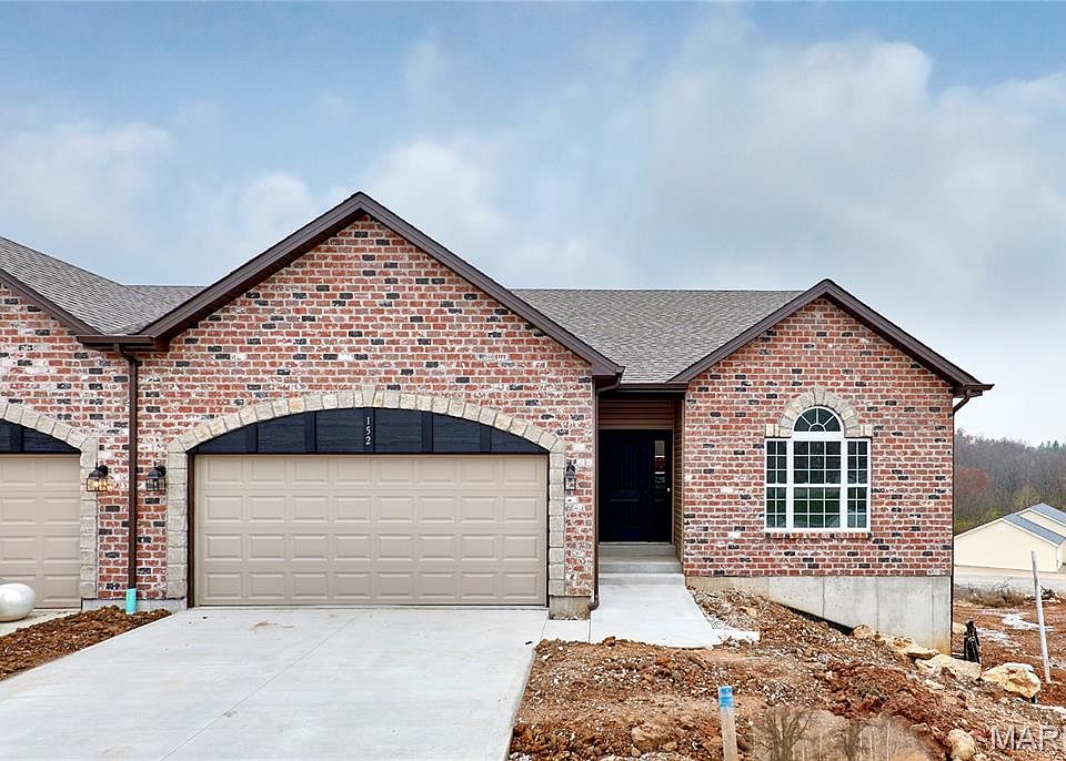 New Construction villa with over 2650sf of living space in Moscow Mills. Stunning brick & stone elevation exterior w/ delightful architecture features inside the home. Main floor has 9' tall ceilings w/impressive great room, vaulted ceiling, beautiful fireplace. Laminate flooring throughout great room, breakfast room & kitchen. Enjoy cooking in a lovely kitchen featuring custom cabinetry, huge island, solid surface counters, SS appliances opening right into the bright breakfast room. Spacious master w/vaulted ceiling, large master bath w/separate tub, shower, dual sinks & spacious walk-in closet. Also on main level a nice sized additional bedroom, full bath, laundry area and deck. Walk out lower level is finished with large recreation room, additional bedroom, full bath, 10ft ceilings and a patio area. Great location, minutes from Hwy 61 & Hwy 47! Builder is offering $10K in seller paid closing costs, if closed by the end of 2025.
