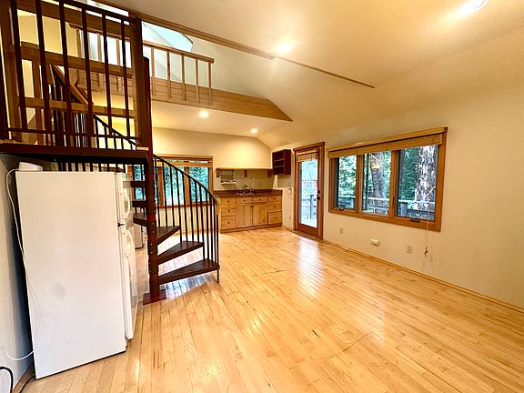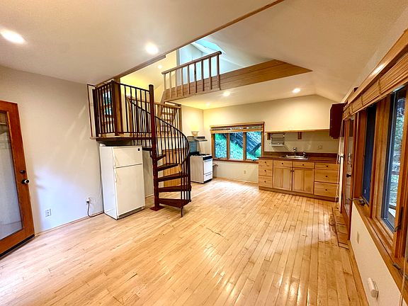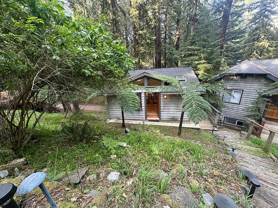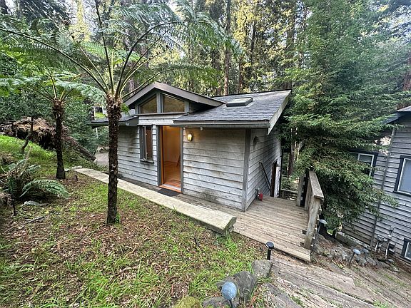 Welcome to this charming, cozy 1-bedroom, 1-bathroom cottage in the serene and picturesque Woodacre. Nestled in a peaceful neighborhood surrounded by nature and gorgeous Redwoods, this delightful cabin offers a free-flowing floorplan with a spiral staircase separating the bedroom from the living area. This unique home boasts hardwood floors, recessed lighting, a vaulted ceiling, a bath with limestone tiled stall shower and pedestal sink, and an open concept kitchen with granite countertop, open shelving, and a gas range. It also offers a separate private laundry room and dedicated parking space. It's a perfect retreat while still being just a short 8-minute drive from Fairfax with it's local shops, restaurants, and outdoor recreation.