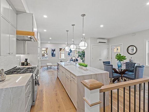 152 Charles Street, the 1846 Edward Collins house, winner of the 2023 Preservation Award by the Cambridge Historical Commission. Entering this beautiful home, you are welcomed by an open-concept kitchen and living space that is blanketed in natural light with hardwood floors throughout. A quartzite kitchen island with a four-seat breakfast bar, beautifully designed custom hood vent, and top-of-the-line Dacor appliances provide a tasteful and functional space, allowing for both a cozy night at home by the gas fireplace and comfortably hosting friends and family. The second floor hosts a sizable primary bedroom with cathedral ceilings, a bathroom with a rainfall shower, skylight and radiant heat flooring and a spacious walk-in closet. Convenient to Lechmere, Kendall Square and Boston, these homes have the privacy, space, and comfort you need.