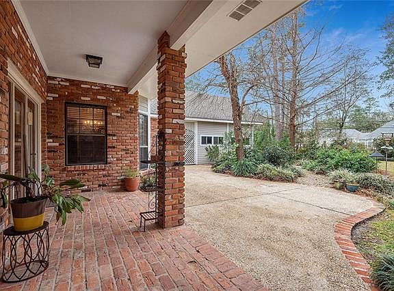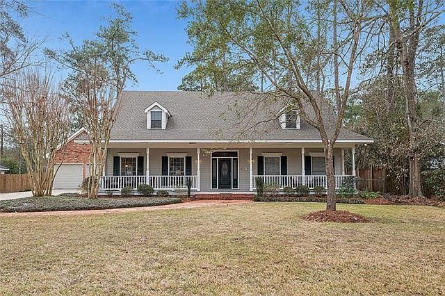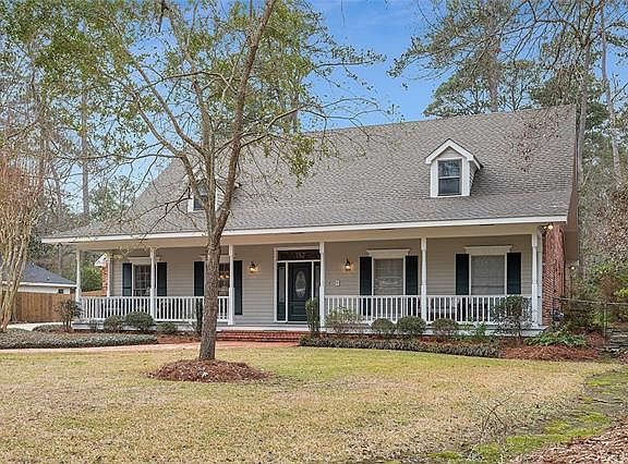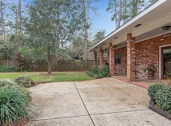 Amazing floorplan in this 5 bedroom, 3 1/2 bath home in the Riverwood Subdivision. The soaring foyer ceiling and staircase lead to 3 bedrooms, 2 baths and bonus room upstairs. Downstairs includes 9' ceilings, master bedroom plus guest room and 2 full baths + 1/2 bath and a large kitchen, den and dining. The two car garage opens to a covered parking area and workshop. Expansive brick patio overlooks a fenced yard with plenty of room for a pool. Mandeville schools, flood zone C, nbhd pool and boat launch.