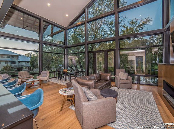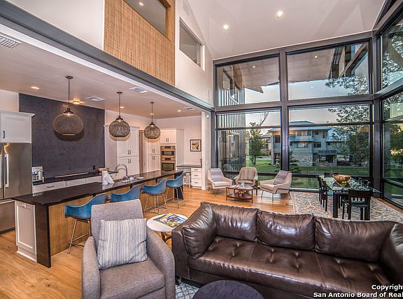 Waterfront gem on Lake McQueeney! Winner of multiple awards for architectural design, this home was built to bring the amazing views directly into the large living room. With 4 bedrooms and 4.5 baths, the house is large enough for any family and sleeps up to 12. Lrg open floor plan with gourmet kitchen, modern furnishings and many designer touches. Large fenced lot with room to play. Under the house is a screened porch with outdoor TV & gas grill. Boathouse. Gated community of The Point at Lake McQueeney.