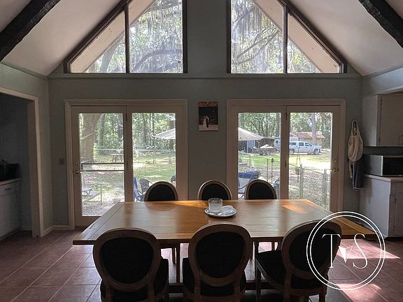 This beautifully maintained and recently updated 3-bedroom, 2-bath single-story home offers 1,758 sq ft of comfortable living space, all on one level. The open floor plan features stunning vaulted ceilings with exposed wood beams in the living and dining areas, creating a warm and inviting atmosphere. The kitchen includes hard surface countertops, cabinetry with built-in shelving, and modern appliancesincluding a 5-burner gas range with griddle and custom range hood. A cozy wet bar and coffee station add extra charm and convenience for entertaining. The great room boasts a gas fireplace for year-round comfort. The primary bathroom features a custom walk-in shower, giving it a spa-like feel. Additional highlights include a 24x25 detached garage with carport and workshop area with 220-volt outlets, an attached 2-car garage, and a 14x16 utility shed with both hot and cold water access. The fully chain-link fenced backyard offers privacy and space for outdoor activities. Conveniently located with easy access to I-95, Hinesville, and Richmond Hillmaking commuting and running errands a breeze. Lawn care is included in the monthly rent, making maintenance hassle-free. Pet friendly!* (*One time, non-refundable $250 pet fee may apply, per pet, 2 pets limit).