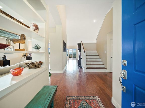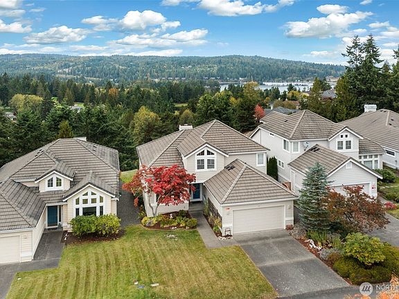 Nestled in a serene, upscale neighborhood, this main-level living gem is the ONE! Its inviting floorplan boasts soaring ceilings, abundant natural light, & gleaming hardwood floors. Two cozy fireplaces warm spacious living areas, perfect for relaxing evenings. Step onto the expansive deck w/a remote awning to savor stunning golf course, Ludlow Bay & Olympic Mountain views. The sleek, updated kitchen dazzles with style. Spacious primary suite offers private back porch access and features a luxurious, renovated bath w/a large walk-in shower. Upstairs, discover two airy guest rooms, a full bath, and an office with a view. Impeccably maintained to include fresh exterior paint. Steps from miles of trails, golf, marina & Bay Club. Welcome Home!