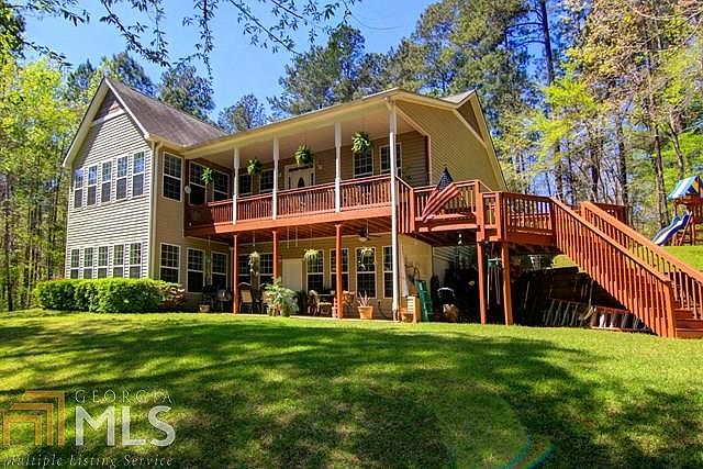 This is a Rare Find!!! An Immaculate Home on 1+ acre DEEDED lot on Tussahaw Water!! Beautiful and Impeccable are the Best Adjectives!! Three Bedrooms and Two Baths on the Main Level. OPEN Floor Place with a Fireplace. Pristine Hardwood Floors. Great Kitchen. Covered Porch and a Open Deck . Basement is Finished with One Bedroom, Full Bath, Mini Kitchen, Large Family Area and a Covered Patio. Part of the Basement is Open and Provides Oodles of Storage. Beautifully Landscaped. Partially Wooded which Provides Privacy and the Opportunity to See Wildlife and Birds. Located in Quiet Cove. Perfect for Children to Swim and Enjoy the Lake. Floating Dock Complete with a Slide. Good Fishing Spot. Peaceful and Serene Location SHOWN BY APPOINTMENT ONLY. Call Today!!!