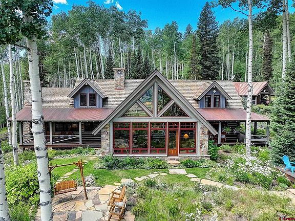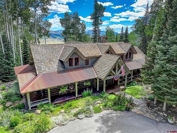 Bear Tree on Evergreen Drive – Crested Butte Luxury Custom Mountain Home Located only 2 miles from historic downtown Crested Butte – “Bear Tree” offers spectacular views of Crested Butte mountain plus is perched above the Slate River valley and historic downtown Crested Butte. This is a rare opportunity to purchase your dream home on 35 acres nestled among mature aspens and pines. Designed as a stand-alone piece of artwork unto itself, 152 Evergreen is truly one of the most stunning homes on the entire Crested Butte area. Custom one-of-a-kind details throughout the home make this property a magnificent sculpture of comfort, quality, and unparalleled mountain living. This exceptional property offers the fortunate buyer the chance to bypass years of planning, design, construction, and permit work and start their Crested Butte dream today. With 5 bedrooms, 5 ½ bathrooms and 4,600 Sq Ft of living space, the home provides the perfect mountain getaway for friends and family to enjoy. Bear Tree is an extraordinary opportunity for comfortable, mountain living in Crested Butte. As you enter this home, you marvel as the large great room with floor to ceiling 25 foot windows perfectly framing Crested Butte mountain. Relax in this distinctive custom home in a exquisite private setting with views of Mt. Crested Butte. Designed by Sunlit Architecture and handcrafted by builder Fred Holbrook. This home was completed in 2006 and boasts high quality finishes and attention to detail throughout. Constructed with re-claimed timbers with chinking, finishes include dry stacked rock fireplaces and stone accents, vaulted ceilings and exposed trusses with custom iron work, custom doors, in-floor radiant heat, and Lite Touch lighting system throughout. This mountain home has a stunning entry and great room with huge view windows. The dining area, gourmet kitchen, and butler pantry are adjacent and are also on the main level along with the office and Master suite. The main house also has two bedrooms and a spacious loft sitting area with space for game or billiards table upstairs. The Guest House - the detached heated three car garage has two additional bedroom suites and a sitting area with wet bar. Exterior spaces include wrap-around covered porches with speakers from main house surround sound system, stone crafted sitting areas and hot tub with up-lighting in the surrounding pine and aspen trees. The quality of the finishes from the custom light fixtures, to the leather wrapped railing, and selection of decor make this a must see for the discerning buyer. Preview the 3D virtual tour – and schedule a tour of this wonderful home! Start Creating Your Lifetime of Memories Today!