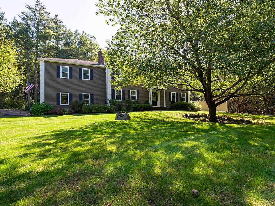 Reduced Price!!! Immaculately-maintained 4 bed, 2 1/2 bath, 3,200 SF Hollis colonial on 2+ Acres is like-new with-efficient upgrades and renovations. Inside, a large bright kitchen with granite countertops, new SS appliances and tons of cabinet space flows into a beautiful new sunroom. Formal dining room off the kitchen includes chair rail molding, and the large living room is anchored by a gas fireplace, wide plank floors and built-ins, while the family room offers another gas fireplace for comfort and ambiance. Primary suite provides tons of space, privacy, and high end finishes. The large bathroom has a corner tub, glass shower, dual vanities, and walk-in-closet. Three other large bedrooms are centered around an updated bathroom and 2nd floor laundry room with utility sink. Hardwood floors, crown molding, and recessed lighting throughout the 2nd floor. A 20x24 garage was added in 2020, providing space for a large vehicle. A new deck with space to grill and dine overlooks a circa 2019 heated in-ground pool, fire pit, and space to garden in your fenced-in backyard. The paved driveway extension and gravel pad will fit your boat, RV, or other outdoor toys! Beautifully landscaped with irrigation system. All new windows, spray foam insulation in exterior walls and blown-in attic insulation, interior and exterior paint, updated light fixtures, water filtration system, and upgraded electrical service. Highly sought-after Hollis School District with amenities nearby. Don't miss!