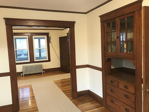 JUST Beautifully Renovated Single Family home for RENT.Available now or March 1st6 rooms,3 bedrooms,1 full bathroom plus 1/2 bathroom on 1st floor.Gorgeous Living room,Formal dining room with built in hutch,large eat in Kitchen with lots of cabinets space and all NEW appliances.Lovely enclosed front porch for relaxing!Other features include:-Newly refinished hardwood floors through out,newer windows,new gas heating & hot water systems,Gas stove,all freshly painted,lots of refinished natural wood,extra finished space in basement,washer available,dryer hook up,HUGE 2 car garage,plus 2 outside spaces,small yard,Pets allowed,Nice natural light.A Gem..Vacant and easy to show...