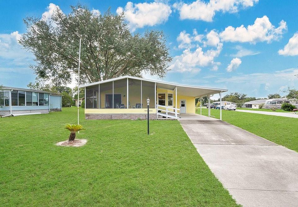 Located on a 0.19-acre CORNER LOT in the heart of the charming community of TERRA ALTA, this inviting 2-bedroom, 2-bathroom manufactured home offers 1,051 square feet of comfortable living space under air—perfect for those seeking an affordable homeownership option without sacrificing safety, convenience or comfort. With a durable METAL ROOF replaced only FIVE years ago, and the exterior just repainted, the home offers low-maintenance appeal, ready for a new owner to come in and make it their own. Step inside, and you'll find lots of potential: large rooms, plenty of storage and a SCREENED IN PATIO that will get lots of use throughout the year. Priced thoughtfully to reflect its opportunity for customization, this property is the ideal situation for first-time buyers, retirees, investors or anyone ready to enjoy a care free Florida lifestyle. For those who crave a touch of resort-style living, the OPTIONAL HOA opens the door to exclusive perks like a sparkling COMMUNITY POOL for lazy afternoons, SHUFFLEBOARD courts for friendly competition, and a welcoming CLUBHOUSE for gatherings and events. But the real magic lies in the location: Just two miles from AdventHealth Fish Memorial Hospital and surrounded by top-tier healthcare providers, peace of mind is always close at hand. Venture out, and you'll discover a shopper's paradise mere minutes away—Publix for fresh groceries, Walmart for everyday essentials, Home Depot or Lowe's for DIY projects, Kohl's and Target for wardrobe updates, and countless more options to fuel your lifestyle. Dining delights abound too, from casual bites to upscale fare, ensuring every craving is satisfied without the hassle of a long drive. Here, life unfolds with the serene rhythm of a small town—the gentle rustle of palms, friendly neighbors waving from their porches—yet you're never far from the buzz of city conveniences. It's the best of both worlds: tranquility by day, convenience at your doorstep. In a market where affordable homes feel like a distant memory, this property stands out as a rare find, priced to move and poised for its next chapter. Don't let this opportunity slip away—schedule your private showing today and envision the possibilities!
