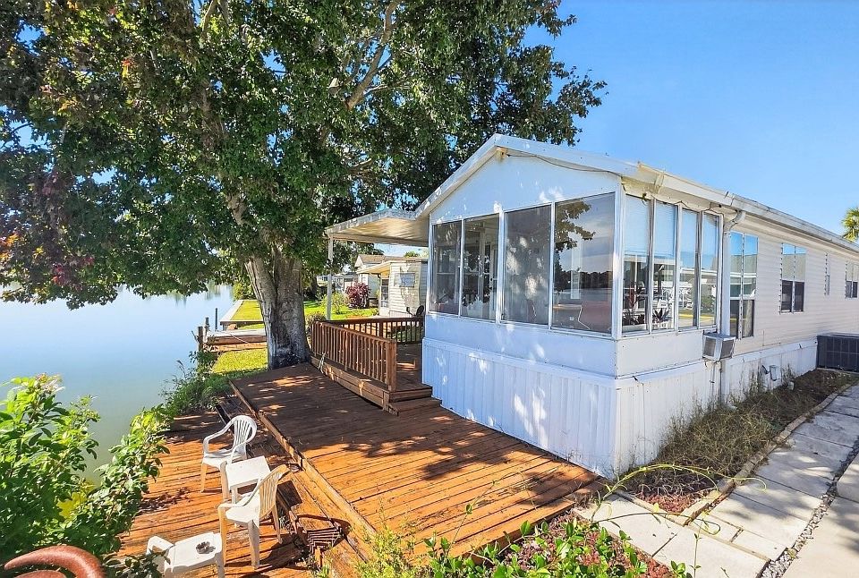 LIST PRICE IS SUGGESTED OPENING BID FOR LISTING PURPOSES ONLY. ACTUAL PRICE TO BE DETERMINED AT AUCTION. ONLINE AUCTION ENDS DEC. 18 AT 11 AM ET. • Community features include 60+/- acre lake, heated pool, boat ramp, waterfront clubhouse • Low COA monthly fee of $115 • Affordable lakefront home with private dock Lakefront auction opportunity - and this one delivers the kind of view people daydream about. Homes on Lake Heron almost never hit the market in Forest Lakes of Cocoa, and the moment you walk through the door, you'll understand why. A full wall of picture windows pulls you straight into 60+/- acres of shimmering, open water-sunlight dancing across the lake, wildlife drifting by, and that instant "I could live like this" feeling. Lake Heron is a peaceful freshwater escape, stocked for relaxed catch-and-release fishing, gentle trolling motor cruises, and evenings watching the sky melt into sunset. This home offers direct access to the community dock, making it easy to hop in your boat and glide over to the clubhouse for dinner, events, or just a change of scenery on the water. Forest Lakes is a resident-owned 55+ community where the amenities match the lifestyle: heated pool, recreation courts, craft and library rooms, private lake access, a boat ramp, and clubhouse activities. And yes-it's a golf-cart friendly community, so you can cruise to the pool, the lake, or your favorite social gathering with ease. In this 240+ unit, resident-owned manufactured home community, COA fees are approximately $115 per month. Lakefront homes here are limited-Bid 2 Buy a rare and compelling waterfront opportunity. Additional Features: • 1,094+/- sq ft under roof | 829+/- sq ft living area • 1992+/- single-wide (vinyl/aluminum exterior, wood frame) • Asphalt-shingle hip/gable roof • Covered patio & screened enclosures • 8'+/- x 10'+/- front shed for storage or workshop needs • Bedroom with built-in dressers, two closets, and nightstands • Multi-level deck; lower levels need repair • Central AC for bedroom, kitchen & dining; supplemental wall unit included • Closet space in the front porch and walk-in closet near living room • Newer wood flooring in kitchen; living room has a pink rug that can stay or be replaced to suit your taste • Sale includes furniture and contents • Only 12+/- miles to Atlantic beaches; minutes to Port Canaveral, KSC & Cocoa Village; easy access to Orlando, Sanford & Melbourne airports COA Fee Includes: • 24-hour gated ADT security & telephone entry system • Maintenance and use of heated pool, recreation areas, clubhouse, craft rooms & library • Boat ramps and lake maintenance • Weekly yard debris pickup; utilities for association buildings • Landscaping, mowing & common-area care • Weed, feed & pest spraying for grounds • Maintenance of common-area equipment • Well-established community governance, events & long-term reserve management • Property #: DG1717 | 10% Buyer's Premium