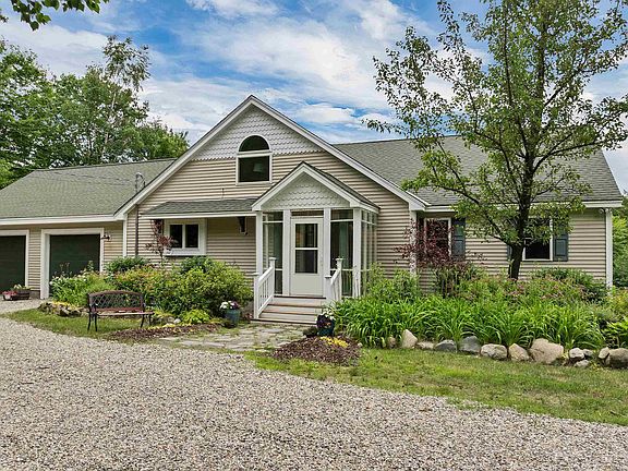 Charming Multistory Contemporary Madison home offering first floor living on 1.41 ACRES OF LAND with gorgeous gardens and SEASONAL MOUNTAIN VIEWS. Situated on a quiet town maintained road this 3088 sq ft home offers privacy surrounded by nature and is only 1 mile to pristine Silver Lake. The house features a tiled foyer which flows to open concept kitchen, dining & living rooms, perfect for gatherings. The kitchen boasts cherry cabinetry with pantry, lots of storage, granite counters, & a large island with seating. The living and dining rooms share a cathedral ceiling with stunning floor to ceiling windows to take in the changing seasons. There is 5" wide solid oak plank floors, a cozy gas fireplace, & glass doors open to a 44 ft back deck overlooking the lawn and gardens, great for entertaining and enjoying spectacular westerly sunsets. Convenient half bath off the foyer. The main level primary bedroom has full bath, 2 closets & glass doors onto the deck. Stairs from the living area take you to a wonderful family room open loft. The spacious lower level has 9 1/2 ft ceilings, lots of windows and sliding glass doors for natural sunlight. It has two large bedrooms (one is ensuite with walk-in closet), a den w/Jotul gas stove, office, laundry room, and utility room. There is an attached two car garage, with storage above and two garden/storage sheds. Present owners have completed many recent upgrades(See attached list.) Hiking trail access across the road.