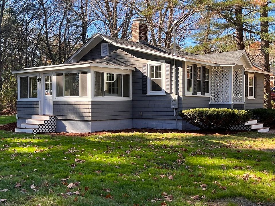 PRICE ADJUSTMENT! NEW roof, NEW septic, NEW kitchen cabinets and stainless-steel appliances, NEW Hardwood floors, NEW windows! This is a bright and sunny, one level-living home with a beamed and vaulted kitchen ceiling, pendant lighting, and brand new stainless steel appliances. Located across from Hood's Pond, this home borders conservation land with Rye Brook right behind you! Enjoy the crisp, cool months next to your fieldstone wood-burning fireplace and invite your friends because there's an abundance of parking here including a 2-car garage. Located close to the quaint downtown area and just 5 driving minutes from Route 95. Set back from the road, with a large, tree-lined backyard and newly planted grass. A new Septic system has just been installed along with a new roof, and new windows. Welcome Home to one of the most affordable homes in Topsfield! **OFFER DEADLINE*** Monday, January 30,2023 at 12:00 PM. Seller reserves the right to accept offer prior to deadline***