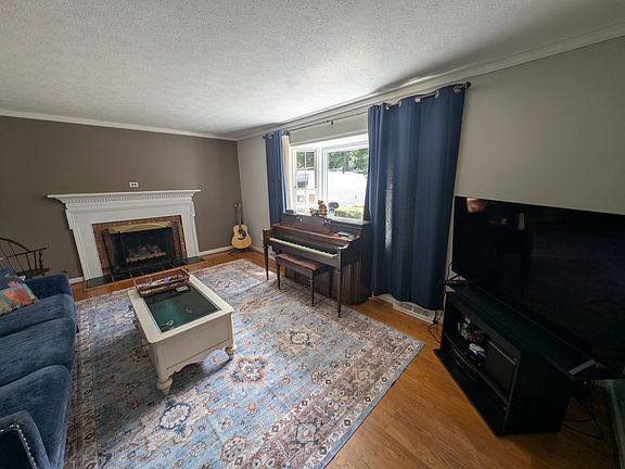 Gas logs in the living room for cozy evenings in the winter and are a great source of supplemental heat.