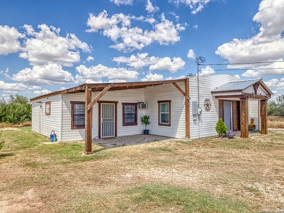 Escape the city without giving up convenience! This charming 3 bedroom, 2 full bath home sits on 1.2 acres and features an inviting open-concept layout with fresh renovations throughout. Stay cool with two mini-splits, and enjoy plenty of room to relax, whether it's on the covered patios after a dip in the above ground pool or unwinding in the cabin with its own kitchenette and restroom, perfect for guests or hobbies. A 2-car carport adds practicality, and you'll love the balance of privacy and accessibility tucked away in the quiet countryside, yet just minutes from H-E-B, Walmart, and town amenities.