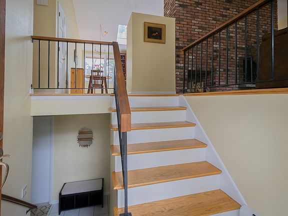 Welcome home to this meticulously maintained, charming raised ranch situated perfectly on almost an acre of land and nestled within a quiet neighborhood. The spacious home welcomes you with its open and airy feel, gleaming hardwood floors, and freshly painted walls. A large picture window fills the beautiful living room with lots of light and a wood-burning fireplace adds ambiance and style. The large kitchen offers gorgeous dark wood cabinets, a pantry, and skylights. The center chimney features an indoor grill and wall oven. French doors lead out to the huge screened porch offering delightful views of the peaceful backyard. The inviting master suite is full of natural light and features a full bath with shower stall. Two more sun-splashed bedrooms feature hardwood floors and large closets for storage. The lower level features a finished family room with bar and an office. Take advantage of nearby walking trails and other recreational activities. The perfect place to call home.