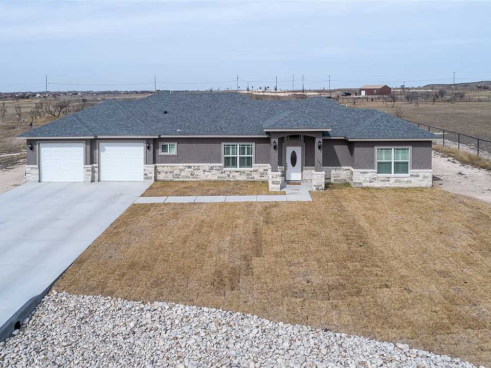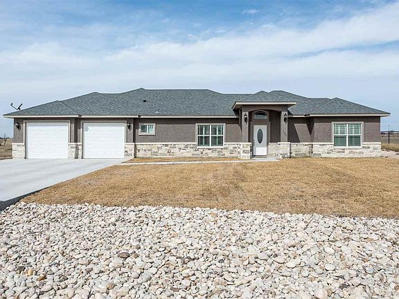 Take a look at this beautiful home located in the new phase of Lake Ridge Ranch! Situated on just over 1 acre of land, this home features a list of custom details that will welcome its new owners! Highlighted with high ceilings, crown molding, plantation shutters, gorgeous tile and a chef's galley kitchen with beautiful granite counters. The large master bedroom is accented with plush carpet flooring and joins an over-sized on-suite bath with wonderful cabinets any homeowner would desire. The open living dining and kitchen areas lead way to the other bedrooms on the other side of this beauty. A small area has been privacy fenced for pets and privacy. With over 1 acre of land there is plenty of space for a shop or barn to be constructed. Enjoy the quiet cul-de-sac living in your new home at Lake Ridge!