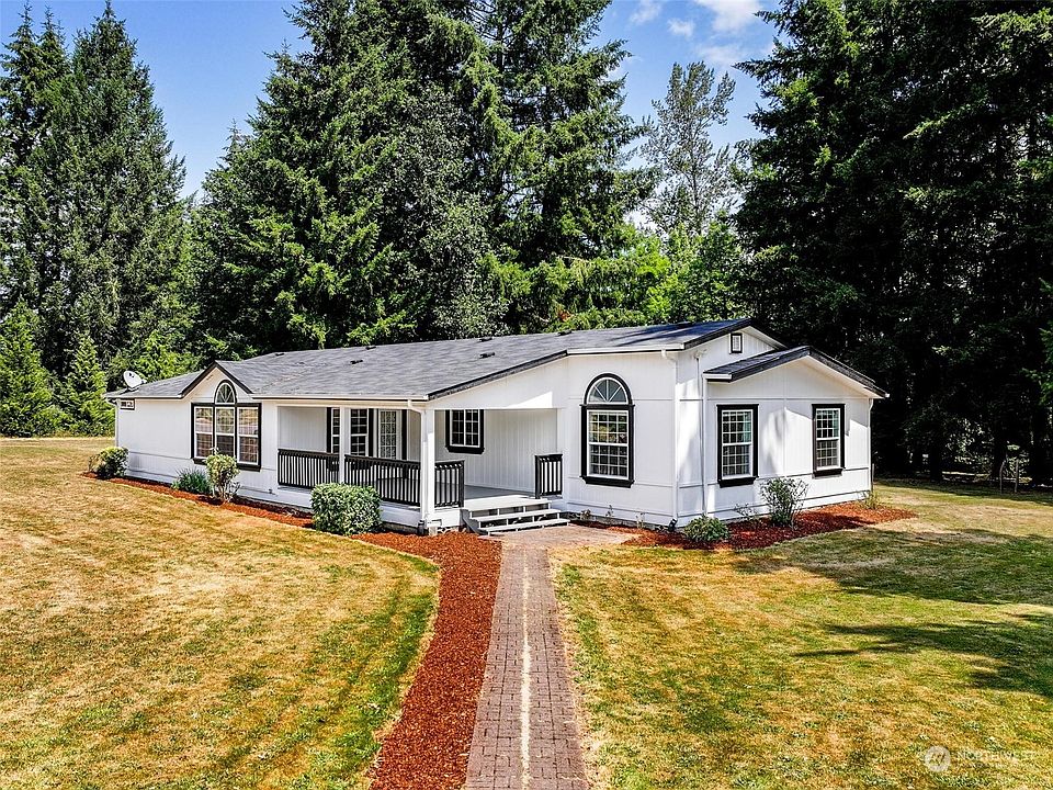 Welcome home to this gorgeous 2286 sq ft triple wide manufactured home on 2.8 acres. 3 bedrooms, plus a den/home office, and a bonus room! Vaulted ceilings throughout. Kitchen has plenty of storage and counter space, including a center island. Primary bedroom features walk in closet & en suite bathroom. Formal dining room with french doors that open to the backyard. Heat pump for both heating and cooling. High speed Fiber Internet available through ToledoTel! Large covered front porch, level landscaped yard, fruit trees, fire pit, and several small outbuildings. Plenty of parking, including room for RV. Seasonal creek & pond. Quiet private road. Schedule your tour today!