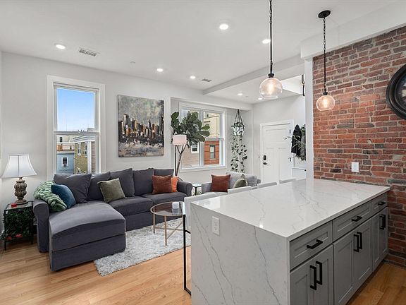 A sun-splashed open layout designed for both everyday living and effortless entertaining. The spacious living and dining areas flow into a sleek modern kitchen with full-size stainless steel appliances, quartz countertops, and a peninsula perfect for casual meals or gatherings. Two well-sized bedrooms with generous closet space make city living a breeze, complemented by two modern bathrooms, one with a glass-enclosed stand-up shower and the other with a soaking tub. The crown jewel is the private roof deck, complete with gas and electric hookups, where you can take in sweeping views of Boston and Eagle Hill. Whether it’s summer evenings, sunsets over the city, or hosting friends, this space takes outdoor living to the next level. Set in one of East Boston’s most desirable neighborhoods, you’ll enjoy easy access to local restaurants, shops, and public transportation. Don't miss out on this urban oasis.