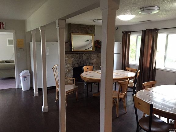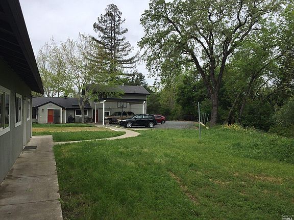 Spacious home of 4 bed, 3 bath 2 levels. Garage has been converted living space. Home borders creek to the north, creates a tranquil setting on nearly 1/2 acre. Detached structure on concrete slab with 2 large rooms and 2 restrooms, has great potential. Potential of family compound, home office, rental unit, art studio. (Talk with Building/Planning Office) Ideal property for Care Facility, Recovery, Sober living or similar.