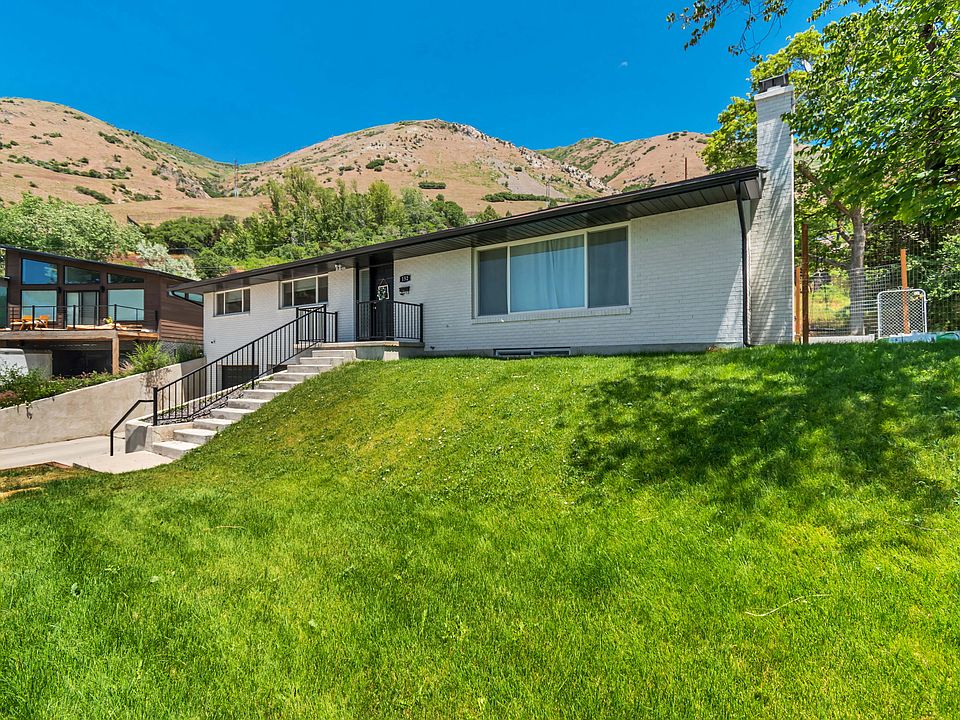 Nestled near Hobble Creek Canyon on a quiet cul-de-sac street, this charming mid-century style home offers the perfect blend of classic design and tasteful updates. Enjoy sweeping mountain and valley views from your living room or shaded, low-maintenance backyard. Inside, you'll find beautifully preserved original features including cabinetry, fireplace mantles, and doors; complemented by modern upgrades like newer windows, flooring, recessed LED lighting, updated fixtures, and insulated garage doors, and much more! Raised garden boxes are ready for planting, and the flat backyard provides a peaceful outdoor retreat. Even better - this home comes with an additional 2,500+ sq ft of land located directly behind the property, which will be conveyed to the buyer at closing. This is a rare opportunity to own a character-rich home in a scenic and convenient east-bench location.