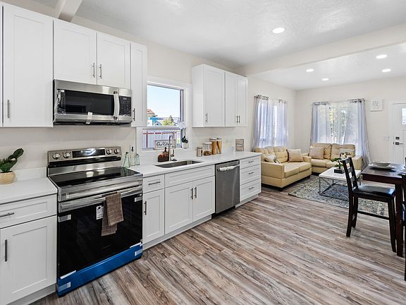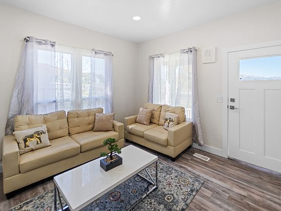 Move-in ready! Two renovated homes on one lot. The main home offers 2 bed/1.75 bath + finished basement office, 1/2 bath & laundry. The separate, backyard ADU offers: 2 bed/1 bath w/full kitchen, living & laundry. The ADU is perfect for rental income, multigenerational living or a private guest space. Both homes are newly renovated with new flooring, paint, windows, cabinetry, countertops, appliances & central air/heat. Fully fenced yard with automatic sprinklers in the front yard, mature trees, and 45 car driveway. Located within walking distance to Tooele High School & Pratt Aquatic Swimming Pool. Enjoy beautiful Stansbury Mountain views from your front porch. All renovations completed with city permits & inspections. Total square footage for both homes is 1896 square feet. This property combines a complete remodel, modern upgrades, and excellent investment potential. Don't miss your chance to make it yours!