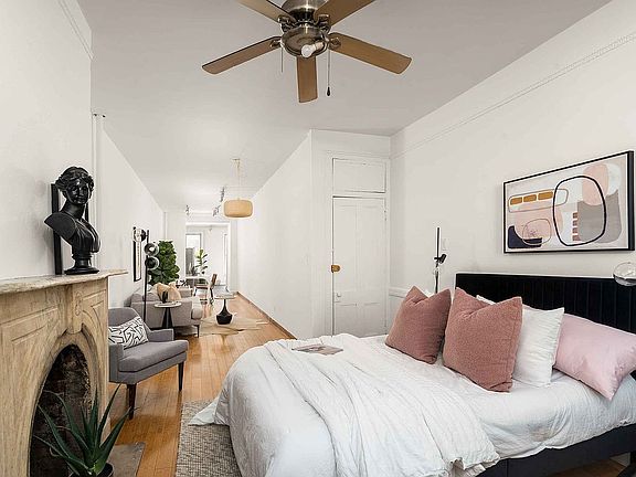The updated kitchen is equipped with new appliances, offering modern convenience in a classic Brooklyn setting. The large bedroom easily accommodates a king-sized bed and additional furniture, with ample closet space to match.