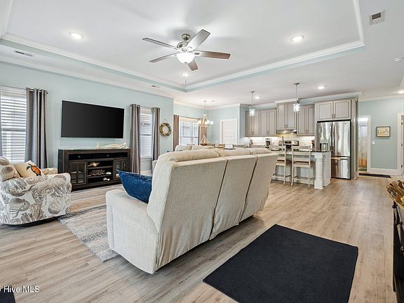 Tucked away in the vibrant heart of Oak Island, 152 NW 1st Street embodies the ultimate coastal lifestyle. This beautifully furnished property is just a short distance from the pristine beach and the mainland bridge, offering an idyllic mix of tranquility and convenience. Upon entering this light-filled sanctuary, you'll immediately appreciate the open floor plan that seamlessly blends the living, dining, and kitchen areas. The kitchen is a culinary dream, boasting elegant granite countertops with a spacious island, a stovetop with a venting hood, and a convenient built-in microwave. A generous pantry and abundant cabinets ensure enough storage for all your kitchen essentials. The main bedroom is a tranquil retreat, featuring a tray ceiling, a walk-in closet, and access to a serene screened-in porch. The en-suite bathroom features a tiled walk-in shower, a double vanity with quartz top, and crown molding. Enjoy the heated and cooled saltwater pool during those hot summer months! The private well with a 2-zone Rain Bird irrigation system helps keep your water bill down. The spacious entrance to the storage room is large enough to house a golf cart, along with your favorite beach accessories and tools. Bonus: This location affords 35 MPH compliance in a golf cart via a ''short'' route to the beach. The property's X flood zone designation means flood insurance is not mandatory for this delightful home. Located just moments away from local shops, lovely dining options, and a wealth of recreational activities, this home sits in a welcoming neighborhood celebrated for its friendly community spirit and laid-back atmosphere—ideal for full-time residents and vacationers. Oak Island presents many activities, from a picturesque golf club and boat launch to nature programs and kayaking adventures, to name just a few. The wonderful Town of Oak Island provides all amenities.