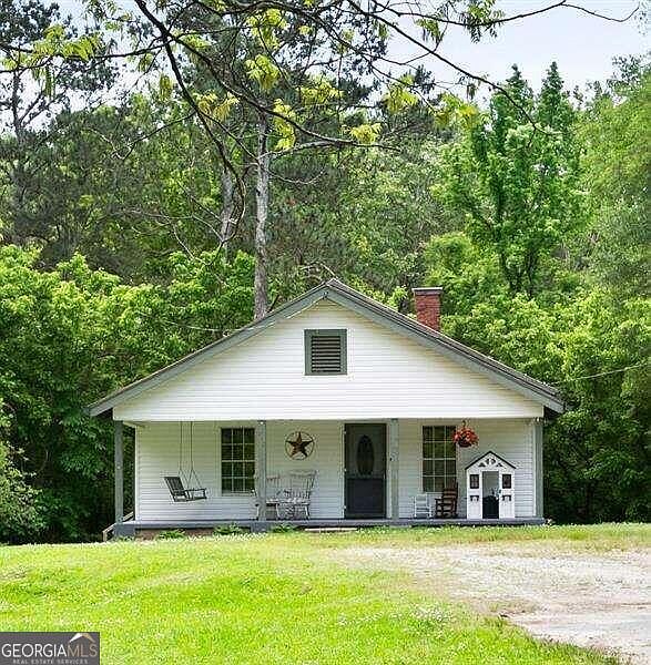Discover the epitome of country living in this charming 2-bedroom, 1-bathroom farmhouse, perfectly situated on approximately 4 acres of pristine land. Fulfill your dreams of cultivating a flourishing garden or mini-farm on this expansive property, where possibilities abound. Currently, the property is mostly wooded but has room to expand and add whatever you desire, let your imagination run wild. This home is a clean canvas and ready for its next owners to put their private touches on it. High 10' ceilings throughout the main living and bedroom spaces that offer an open feel to the floorplan. The original hardwood floors are intact, and have been covered with a laminate flooring in the main living areas, however they could easily be refinished if desired. The farmhouse style kitchen offers plenty of counter space for food prep while entertaining guests, and adjacent to the kitchen you will find a large laundry/panty/mud room. New HVAC/Furnace system, including all new ducts installed in April of 2021. Property also has a well that is not currently in use, but is functional and available as an option for its new owner(s). You will also find a large storage/workshop building for your lawn equipment/tools. Schedule your showing today, and come visualize your daily life in the this beautiful country setting just 1 mile outside of downtown Dallas, GA!